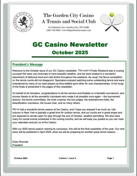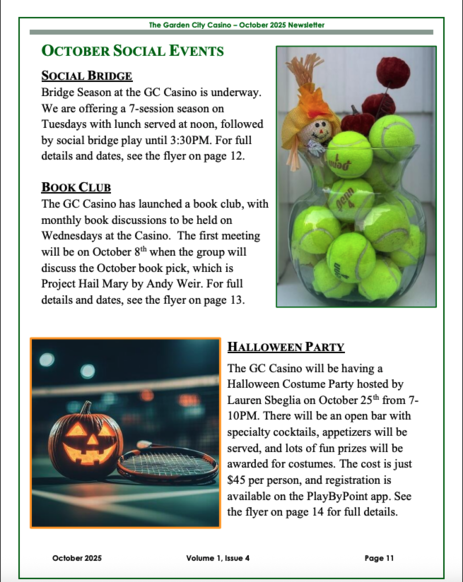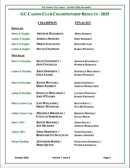 2025 Club Tournament Results Newsletter - October, 2025 Volume 1 Issue 4